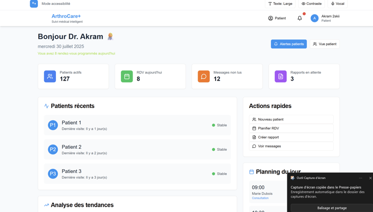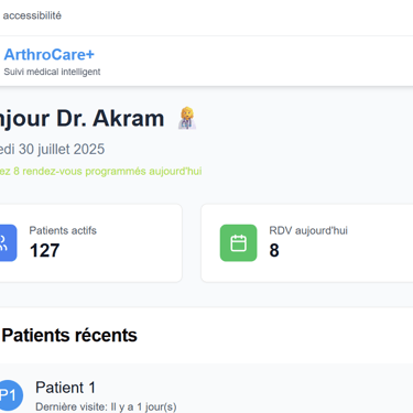 ArthoCare est une application mobile conçue pour accompagner les personnes atteintes d’arthrose ou porteuses de prothèses dans leur quotidien. Le projet mêle santé, digital et innovation, avec une approche centrée sur l’expérience utilisateur (UX).
